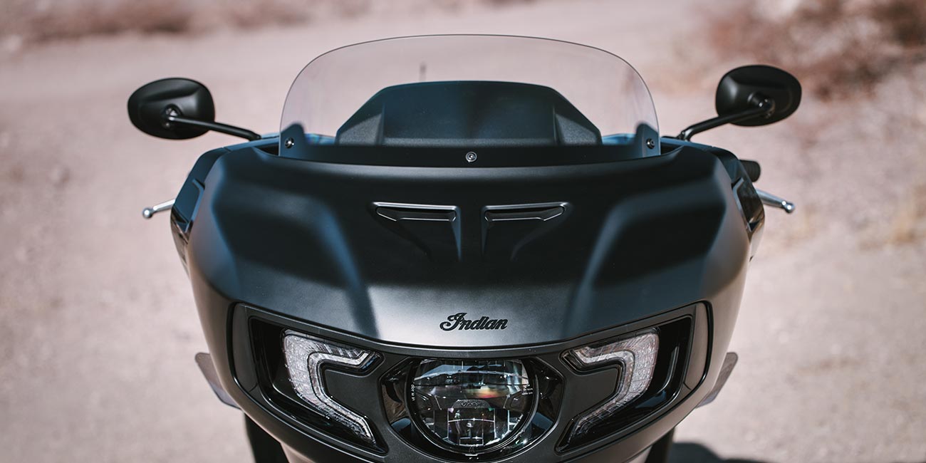 Intégré au tableau de bord, l’écran 7" fonctionnant sous RIDE COMMAND offre la navigation détaillée, la connectivité Bluetooth® et des fonctions d’amélioration de la conduite pour vous simplifier la route. Allez plus loin et profitez encore plus de votre Indian Motorcycle avec le système RIDE COMMAND+ qui offre l'Apple CarPlay®, Bike Health, Bike Locator et bien plus encore.